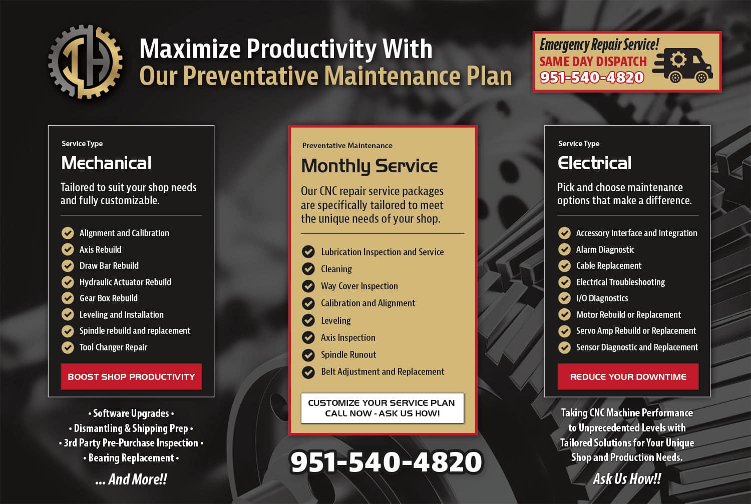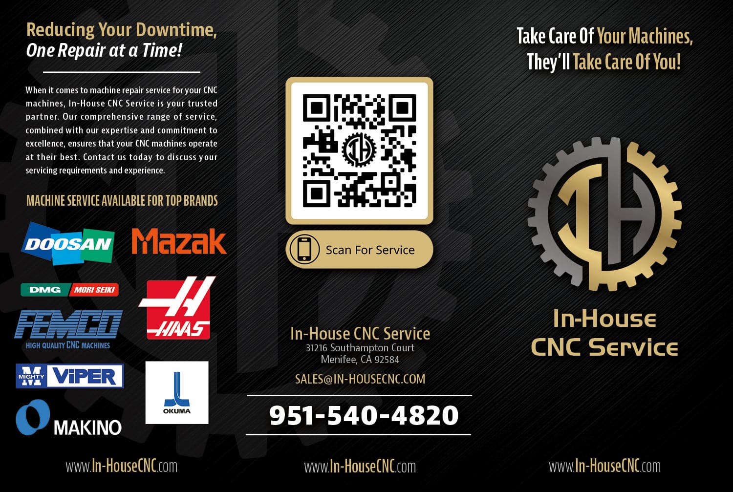 In-House CNC Service provides professional CNC machine repair, maintenance, and calibration for shops and manufacturers across the Southwest. The company partnered with Design It Right to create a complete brand identity and marketing ecosystem that reflected their expertise, reliability, and technical precision—while integrating modern tools for lead management and customer communication.